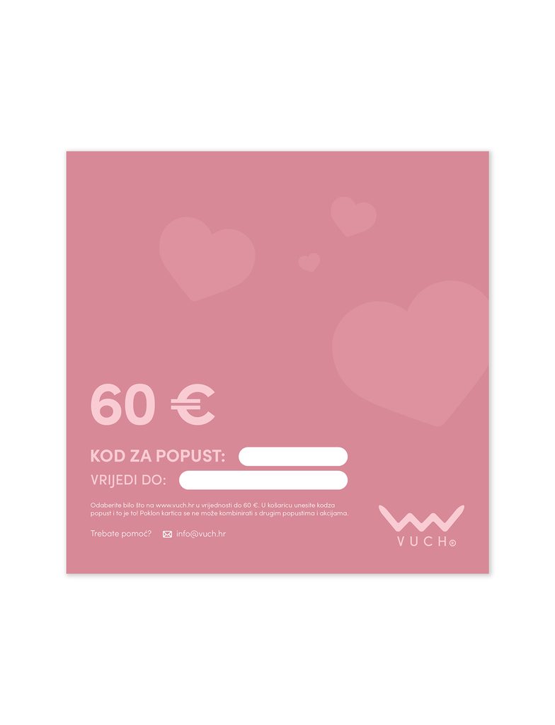 Poklon kartica vrijedi 12 mjeseci od datuma kupnje i može se koristiti za bilo što na web stranici www.vuch.hr.