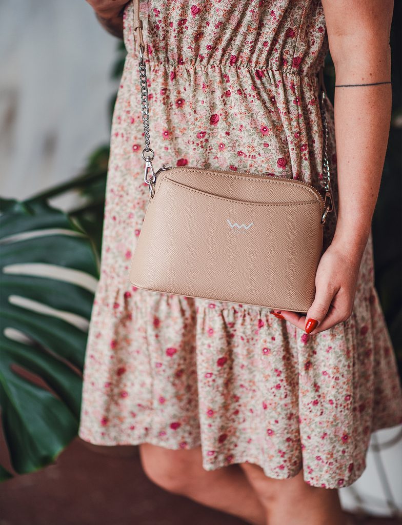 Faye Beige mini crossbody torba s lancem