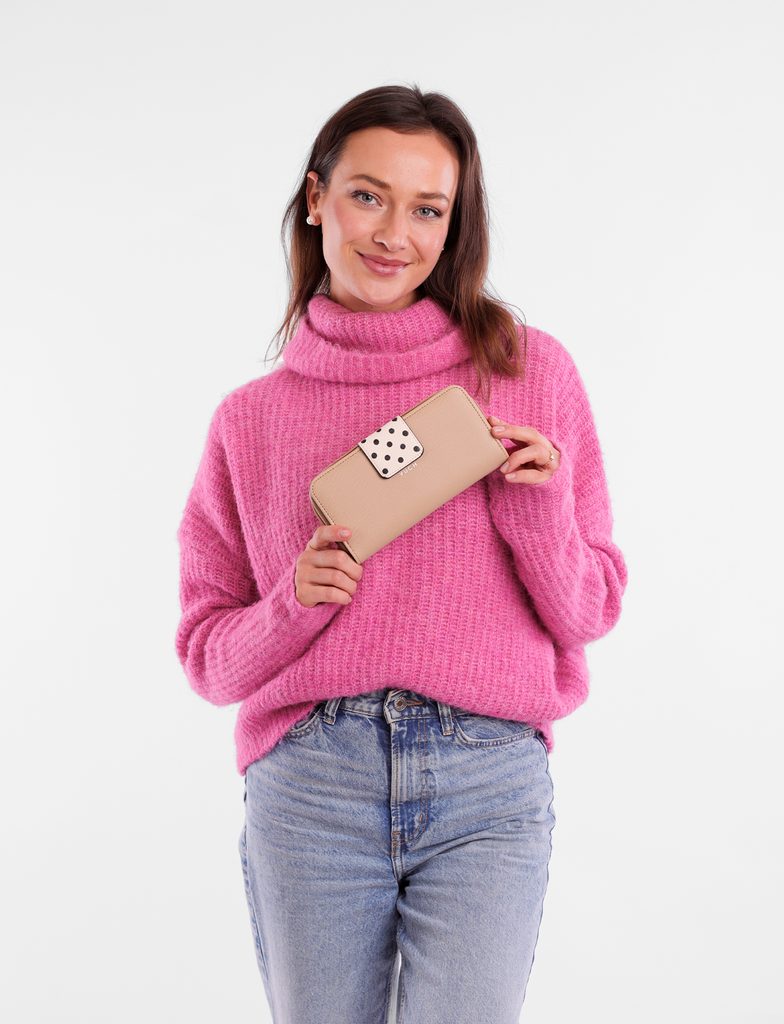 Ineke Beige veliki novčanik na patent s točkicama
