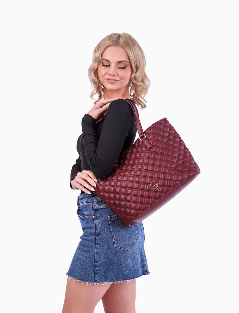 Roselda Classy Wine prošivana torbica s kozmetičkom torbickom