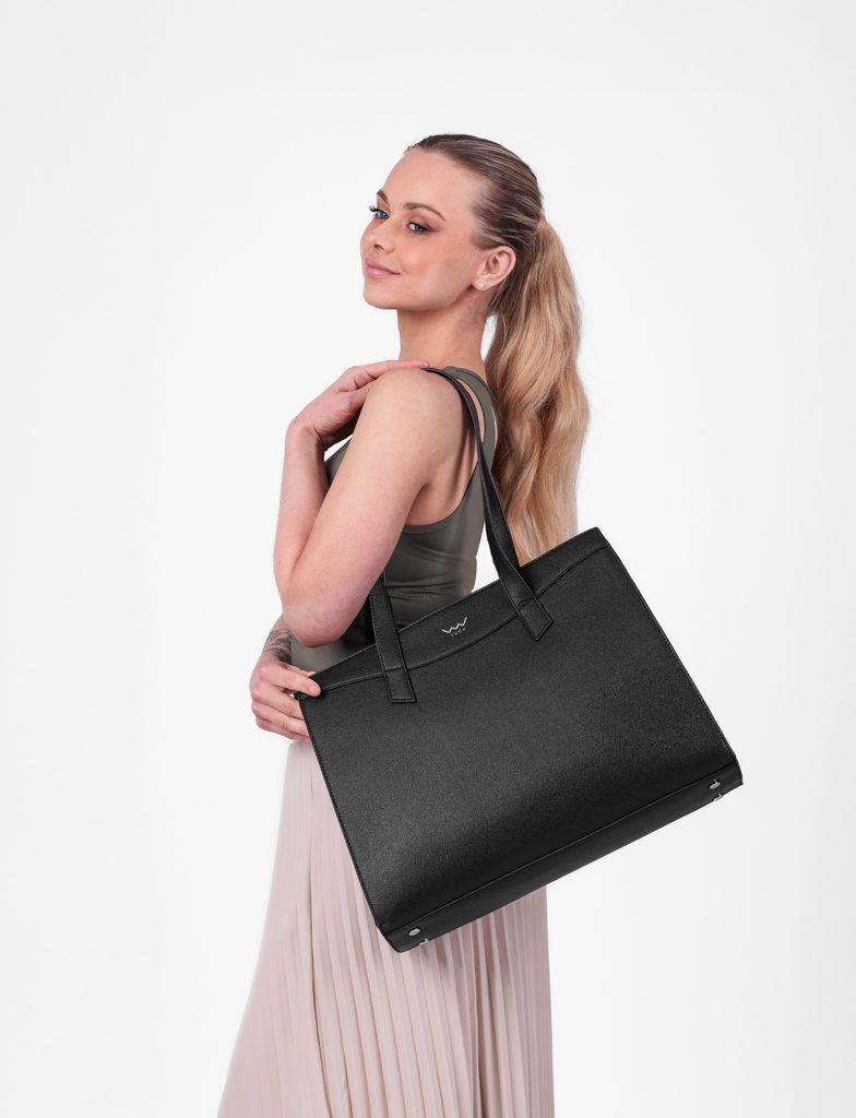 Velika pravokutna torba koja drži oblik i tvoj dnevni raspored čvrsto pod kontrolom. Podijeljena u dva glavna dijela s praktičnom zip džepom u sredini i dodatnom…
