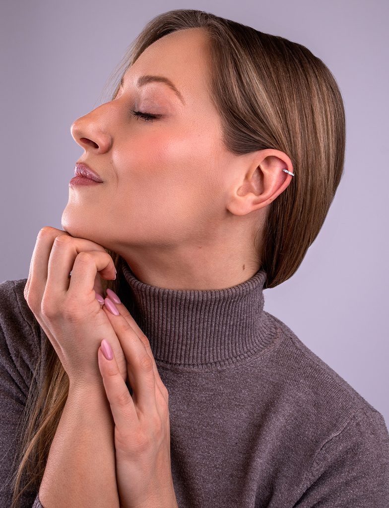 Naušnica Thal je ear cuff prsten ukrašen sjajnim cirkonima koji se nježno presijava na uhu. Samo ga staviš. Bez bušenja, bez komplikacija. Donosi lakoću i suptilan sjaj…