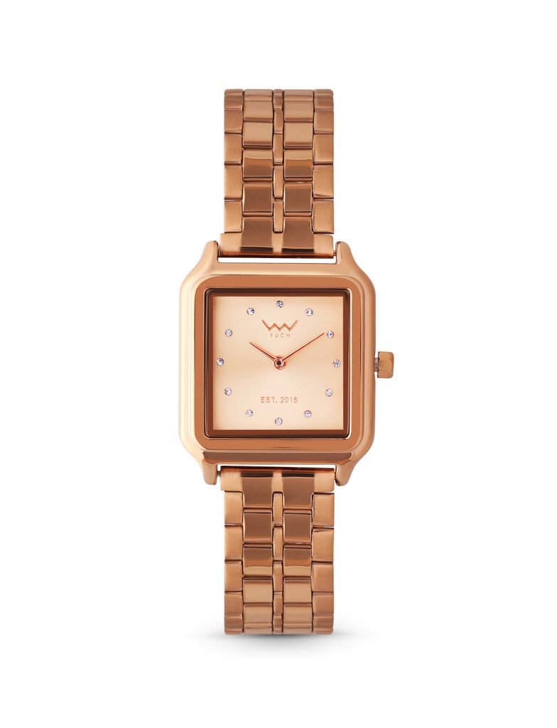 ROEEN osvajaju čistim dizajnom, metalnom narukvicom i četvrtastim brojčanikom koji krašaju nježni kristali umjesto brojeva. Elegantan izgled dopunjuju precizni detalji,…