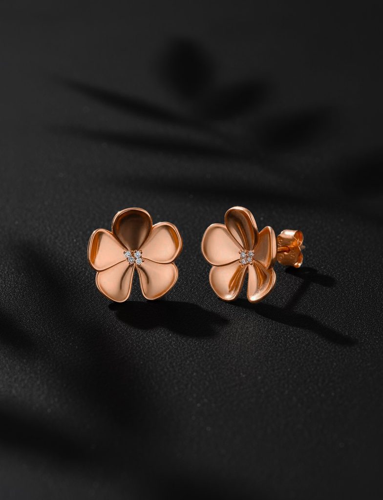 Naušnice Floret Rose Gold nakit od srebra (925/1000) pozlaćen 18K zlatom, težina 3 g