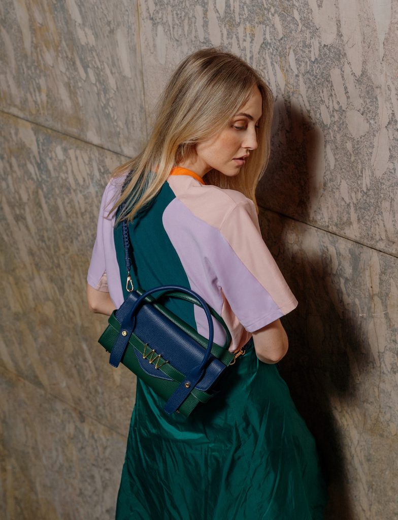 Izvanredan stil torbica prati tri varijante boja koje odražavaju mišljenje i energiju vlasnice. Aurora Rosa (ružičasto-narančasta) donosi energiju i eleganciju talijanskih zalazaka sunca nad toskanskim brežuljcima, Émeraude Ciel (zeleno-plava) esenciju pariškog šarma ili Midnight Dune (crno-bež), koja nosi tajnu gradova poput New Yorka ili Londona.