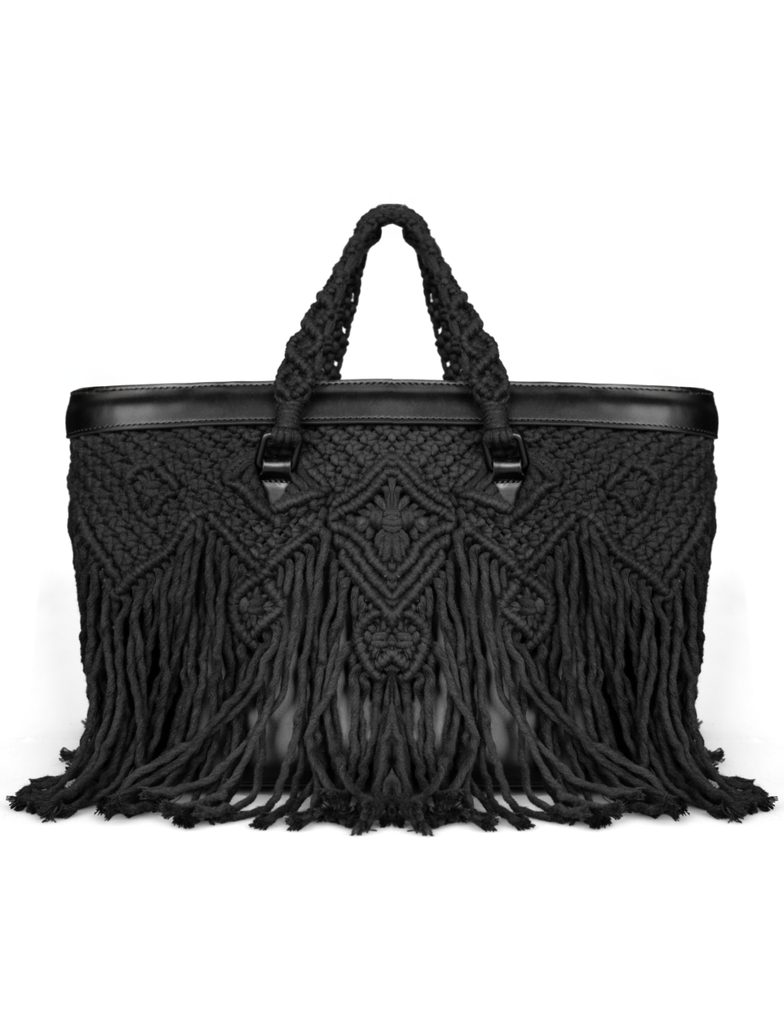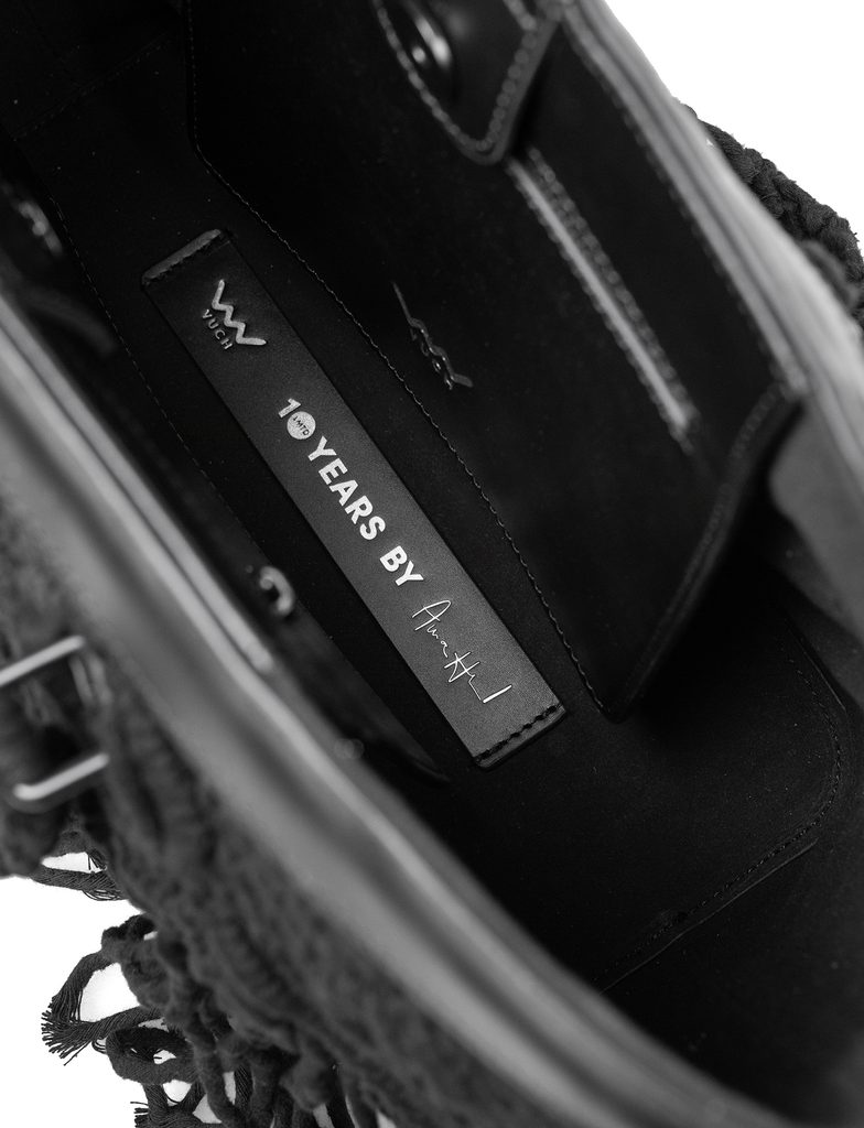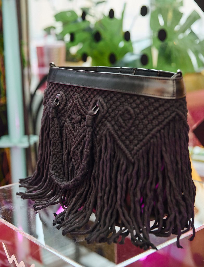 Torbica koja je nastala iz Aničine strasti za makrame spaja ikonični kroj VUCH-a s razrađenom strukturom čvorova koji krase površinu i ručku torbice. Crna boja ističe…