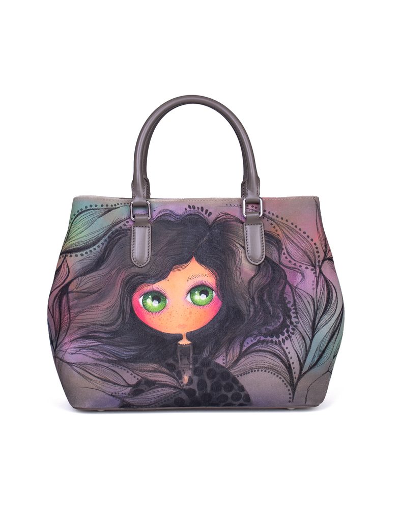Torbica koja evocira život, rast i povezanost s prirodom. Lutka s prozirnim očima kao odraz šume nakon kiše postaje središnja točka kompozicije, dok listovi u pozadini…