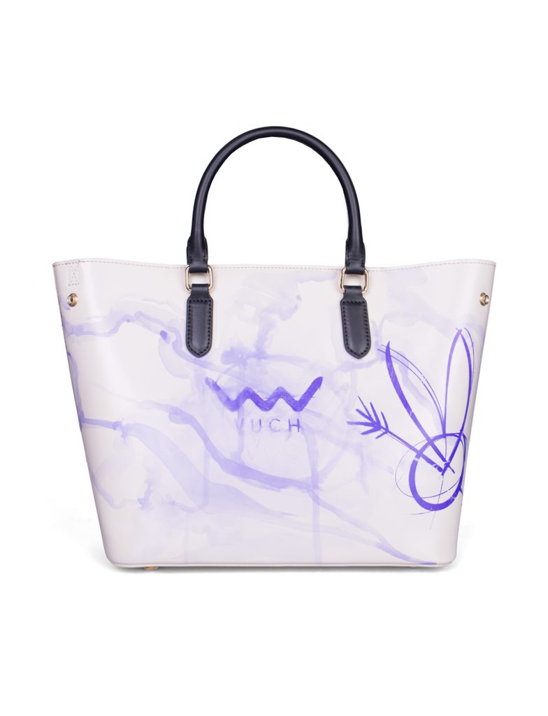 Više informacijaBež torbica čiji ton evocira boju kože i tako povezuje svijet tetovaža s dizajnom. Oslikana je posebnom bojom koju tetovatori koriste za otisak motiva na koži prije samog tetoviranja. Njegov rukopis i apstraktni pristup spajaju se s VUCH logom i autorovim potpisom – varijacijom na srce probodeno strijelom, koje je autor preoblikovao u oblik zeca. Svaki detalj je promišljen, svaki potez nosi vlastitu priču, pa torbica nastaje kao jedinstven komad koji je istovremeno slika, potpis i osobna simbolika autora.