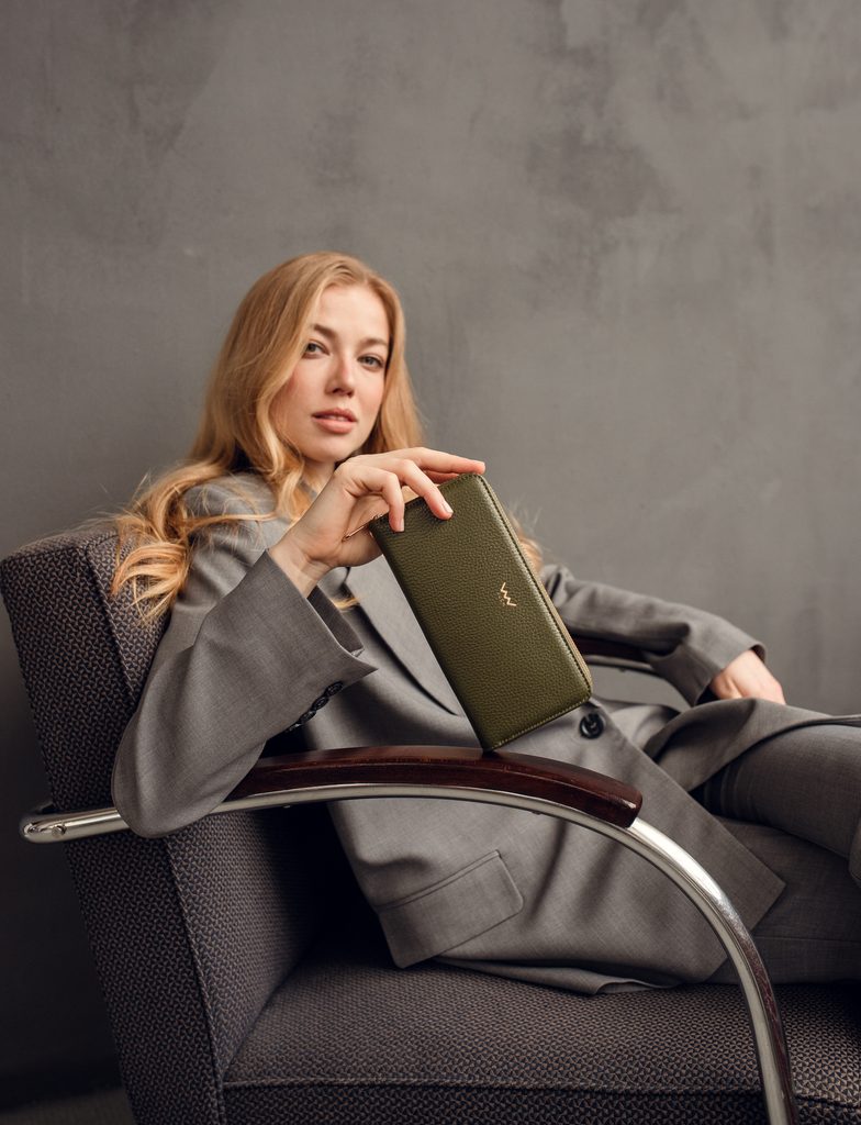 Nightie Nicci Grace Olive novčanik na patent od talijanske goveđe kože