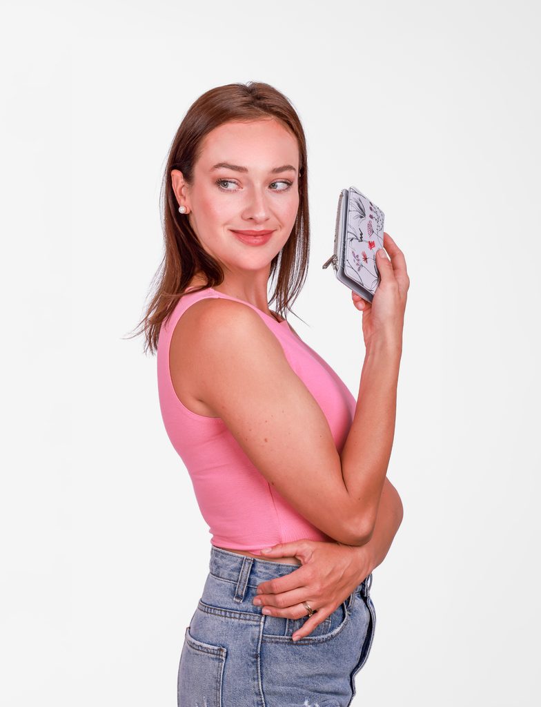 Korra Wildflowers Grey mini novčanik s cvjetnim uzorkom i vezom