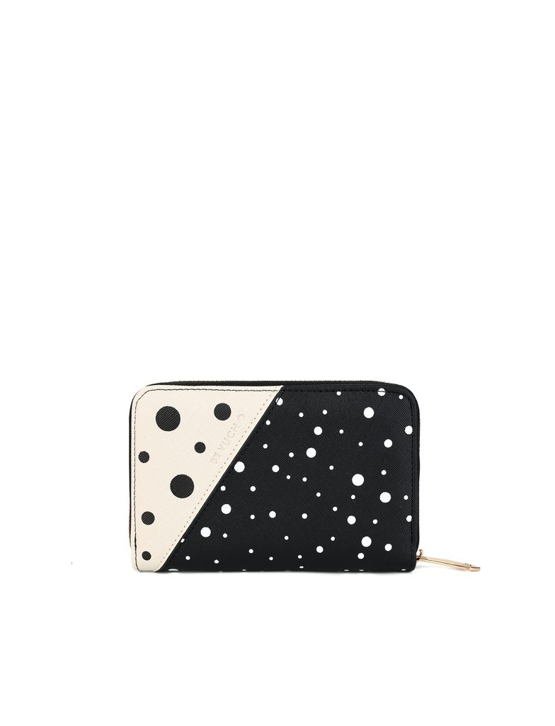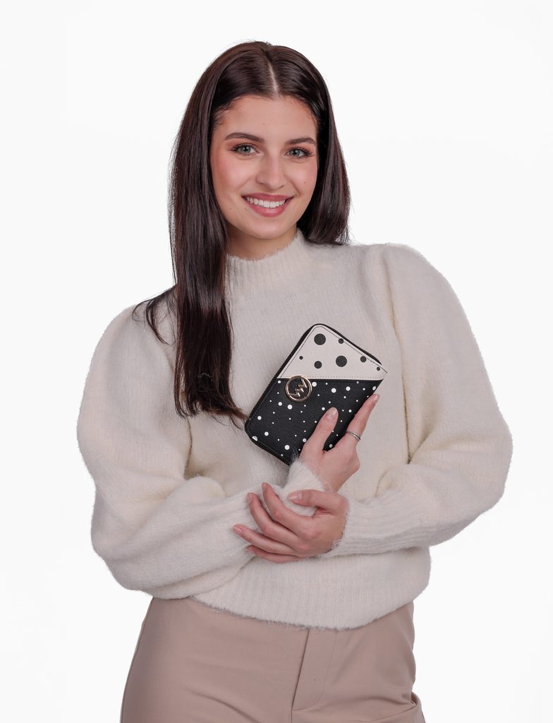 Sibel Black srednji novčanik na patent s točkicama