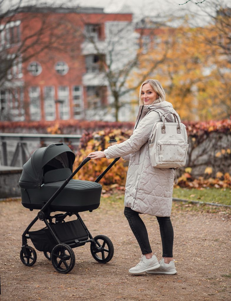 Ruksak koji otvorite dokraja i odmah vidite gdje se što nalazi. Čvrsti gornji okvir drži oblik, tako da se lako pretražuje čak i kada drugom rukom gurate kolica. Veliki prednji džep prima stvari koje trebate imati pri ruci, a par čvrstih ručki olakšava brzo prenošenje između kuće, automobila i igrališta. Izdržljiv materijal, čist dizajn i praktičnost koja se uklapa u svakodnevni život roditelja u pokretu.
