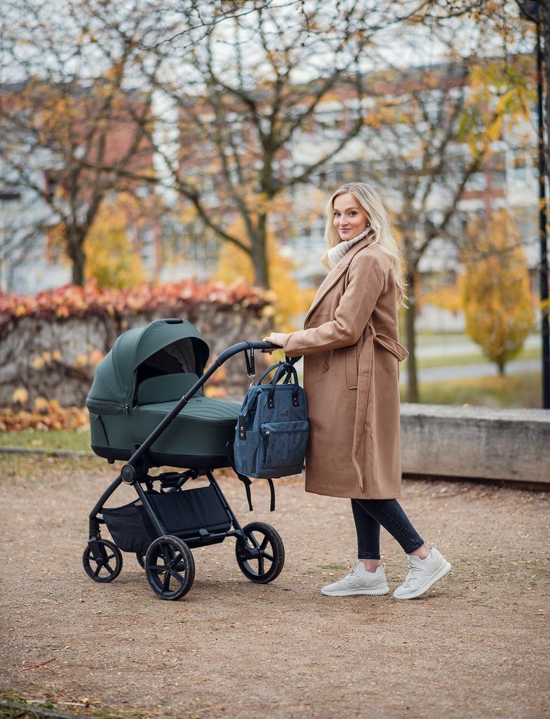 Ruksak koji otvoriš dokraja i odmah vidiš gdje je što. Čvrsti gornji okvir drži oblik, tako da se u njemu lako traži i kada drugom rukom guraš kolica. Veliki prednji džep prima stvari koje trebaš imati pri ruci, a par čvrstih ručki olakšava brzo prenošenje između kuće, automobila i igrališta. Izdržljiv materijal, čist dizajn i praktičnost koja se uklapa u svakodnevni život roditelja u pokretu.