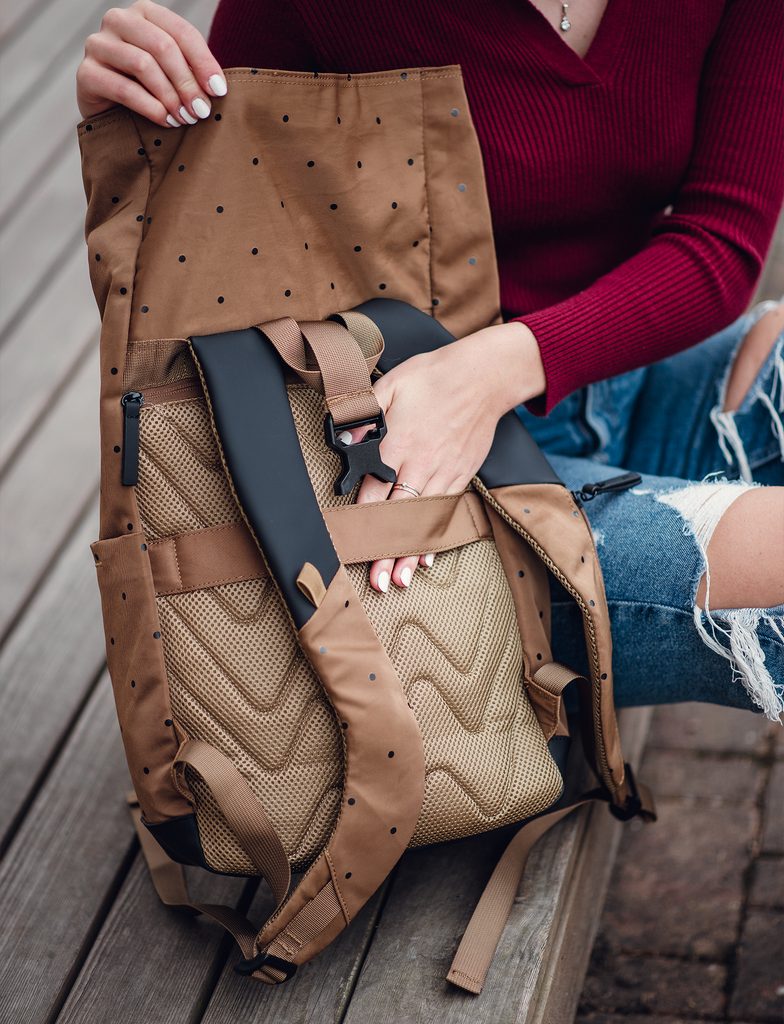 Bilo da planiraš prošetati centrom ili šumskom stazom, ovaj ruksak na točkice držat će korak s tobom. Zahvaljujući roll-top zatvaranju prilagođava se količini stvari…