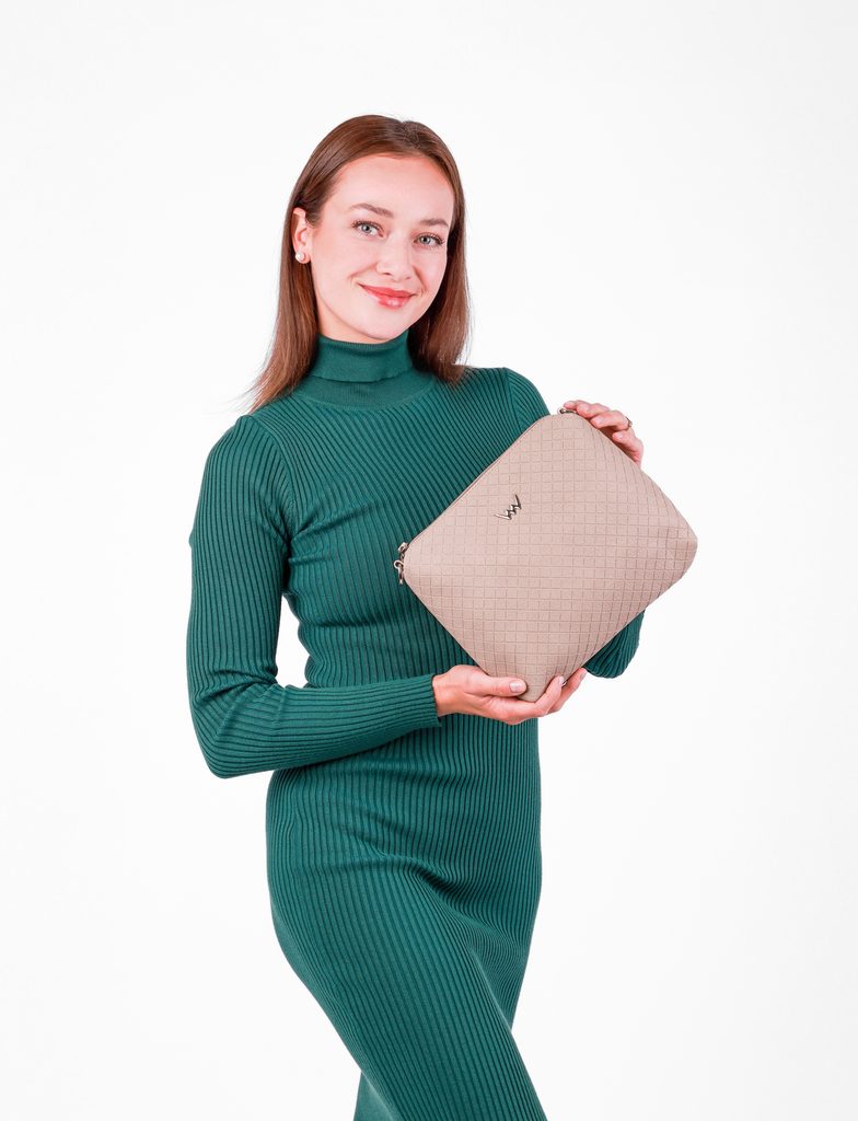 Više informacijaNježno bež boja s diskretnim geometrijskim uzorkom i srebrnim detaljima spaja eleganciju s neformalom lakoćom. Zip glavnog džepa štiti tvoje sitnice, a remen preko ramena osigurava udobnost i slobodu pokreta. Dovoljno je uzeti je i krenuti. bez riječi, samo s osjećajem da sve ima svoje mjesto.