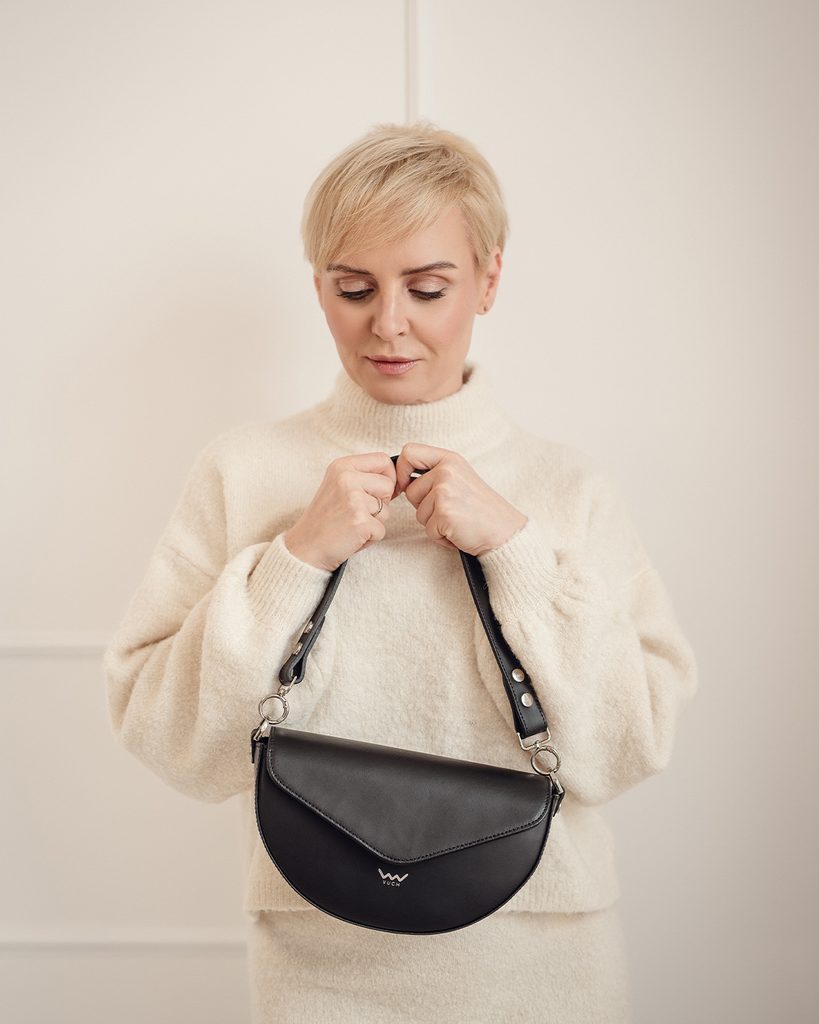 Tricia Grace Black crossbody torbica oko struka od talijanske goveđe kože