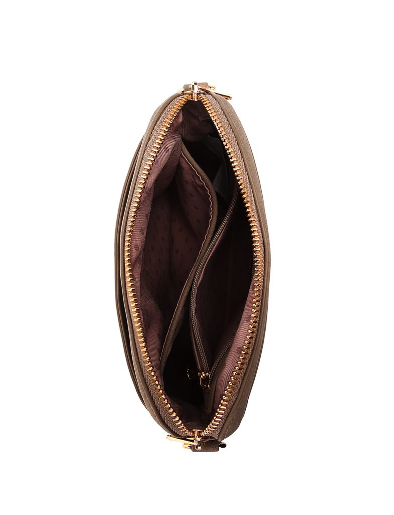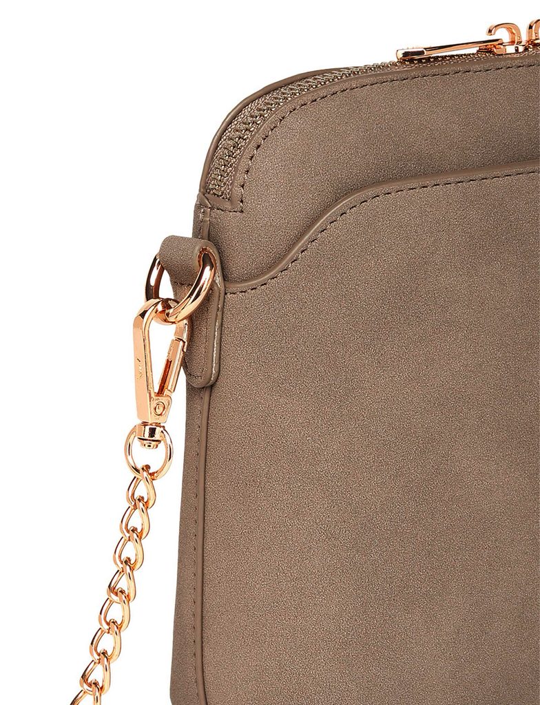 Fossy Mini Suede Beige zamšena crossbody torbica s lančićem